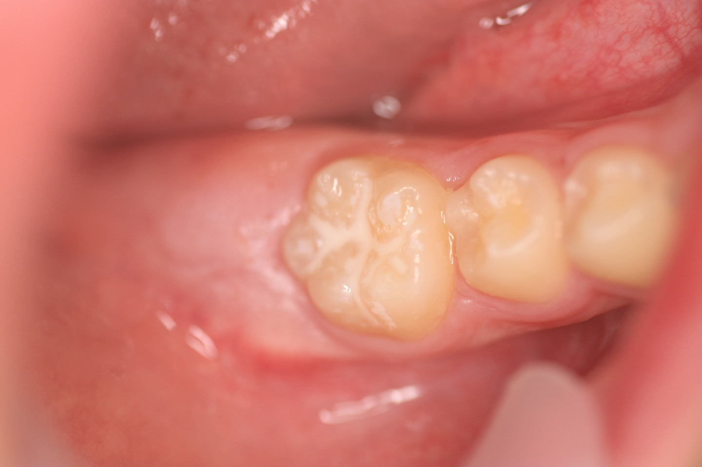 乳歯の奥歯や6歳臼歯(第一大臼歯)の溝は虫歯になり易いため、削らずに樹脂を流し込んで溝を浅くしておきます。