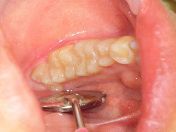 何も詰め物がない様に見えるかもしれませんが、白い詰め物で修復されています。
